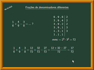 de frações usando o método do Menor Múltiplo Comum e o método do Produto dos Denominadores.