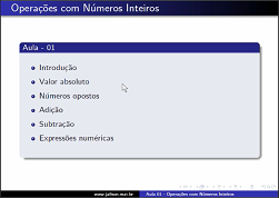 A definição de valor absoluto de um número, a definição de números opostos, a operação adição,